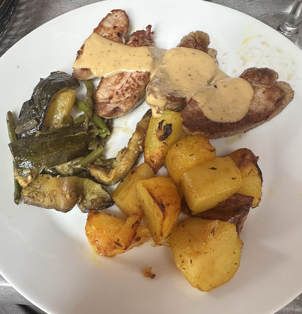 This little place packed out. I’d say a reservation is necessary. We didn’t have one but we arrived about ten minutes before they opened so we were seated right away. By the time we left there wasn’t a table free. The price point is good. It seems like family food. Not polished but wholesome. There is only one vegetarian option on the menu. It didn’t feel very creative but it was ok. The longer I’m in southern France, I’m seeing a big gap in vegetarian options. So many good ingredients and such good skills…..it’s been a bit disappointing. But what can you do?