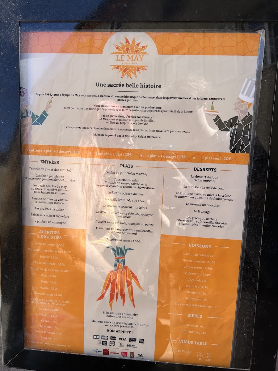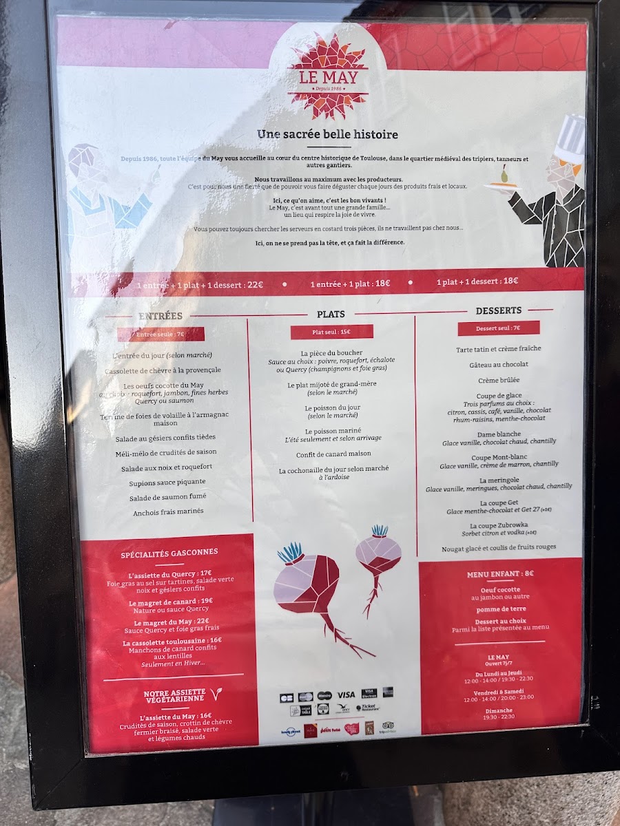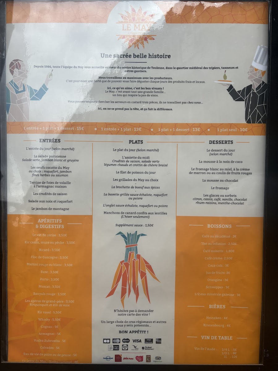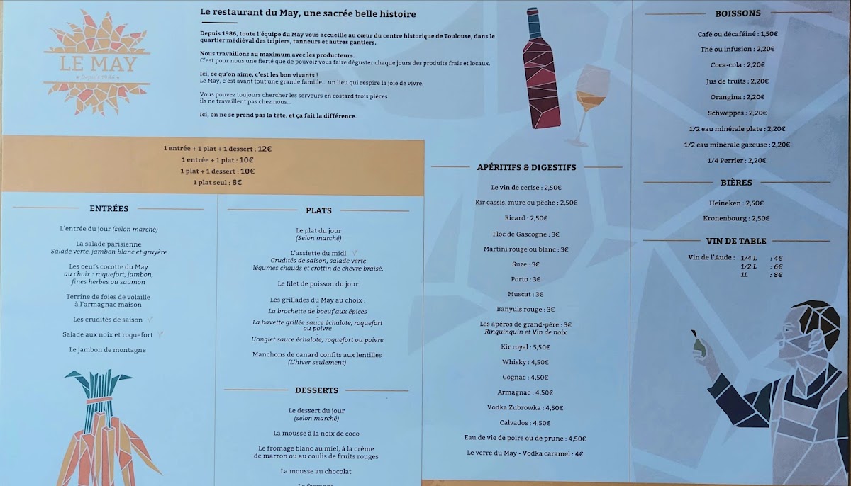 Le MAY offers a menu that reflects the comforting and hearty spirit of traditional French cuisine, presented in a relaxed and welcoming setting. The selection features a range of classic dishes that feel just right for a leisurely lunch or a cozy dinner, inviting guests to savor familiar flavors without fuss.